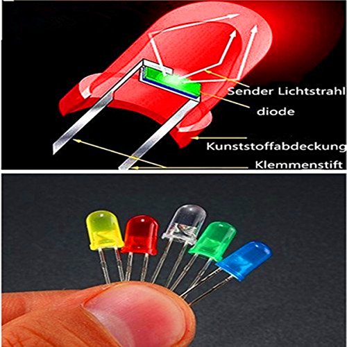 KINGSO 500x 5mm LED Leuchtdioden rund, 5 Farben (100 je Farbe)