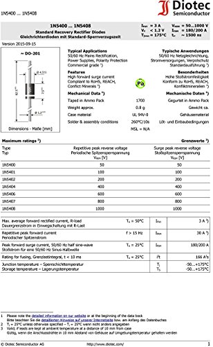 50/60 Hz Netzgleichrichtung Gleichrichterdiode Freilaufdiode Schutzdiode Schaltdiode Verpolschutz Modellbau Arduino, Raspberry Pi, etc. KFZ-Bereich (12V, 24V, etc.) Breadboard Projekte uvm.